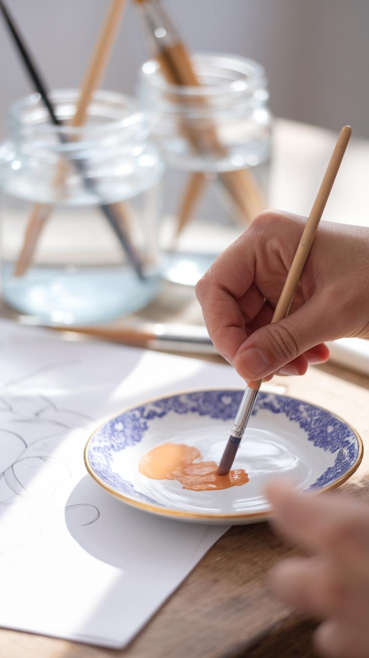 A palette with separate wells or mixing areas keeps your colors organized. Plastic palettes are lightweight and easy to clean, while ceramic ones are heavier but more durable.