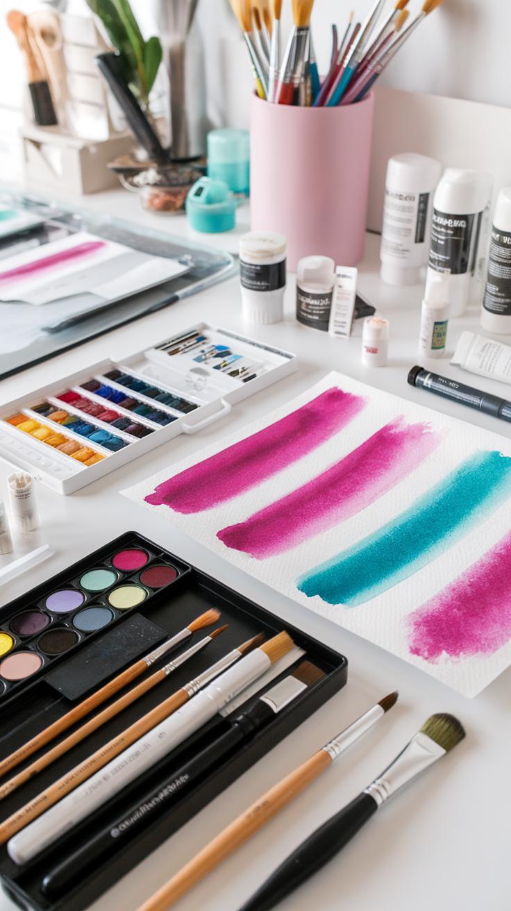Your choice of tools shapes how your abstract watercolor pieces turn out. Selecting the right paints, brushes, and paper affects brightness, texture, and flow.