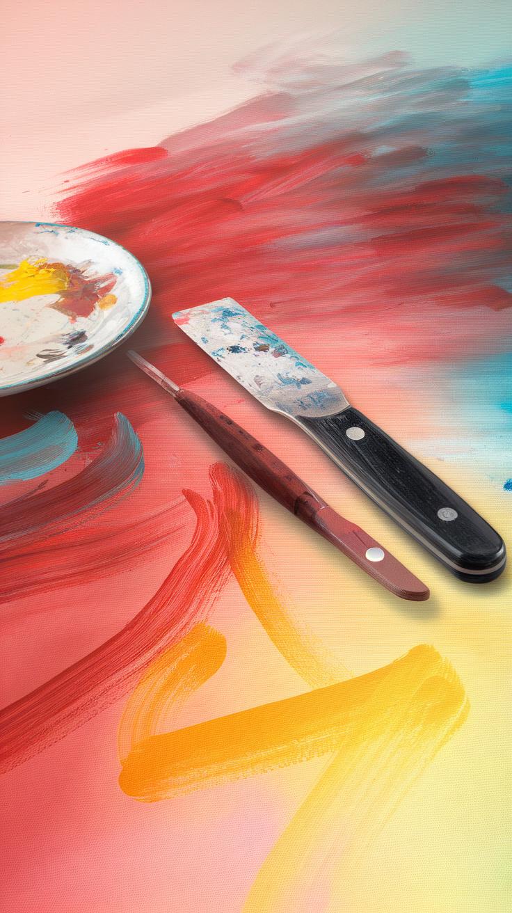 Think about your style when assembling your brushes and paper. Mixing textures and tools gives you flexibility for unique, bright, abstract pieces.